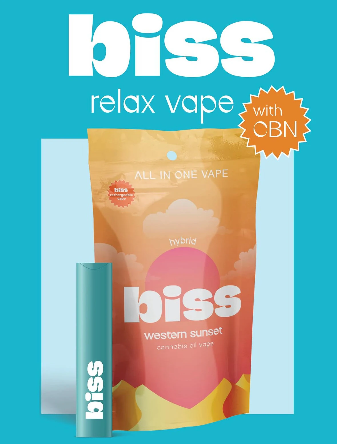 Disposable vape designed for relaxation. Western Sunset has soothing and calm effects and boosted CBG CBN and CBD promotes restful sleep and increased appetite.
